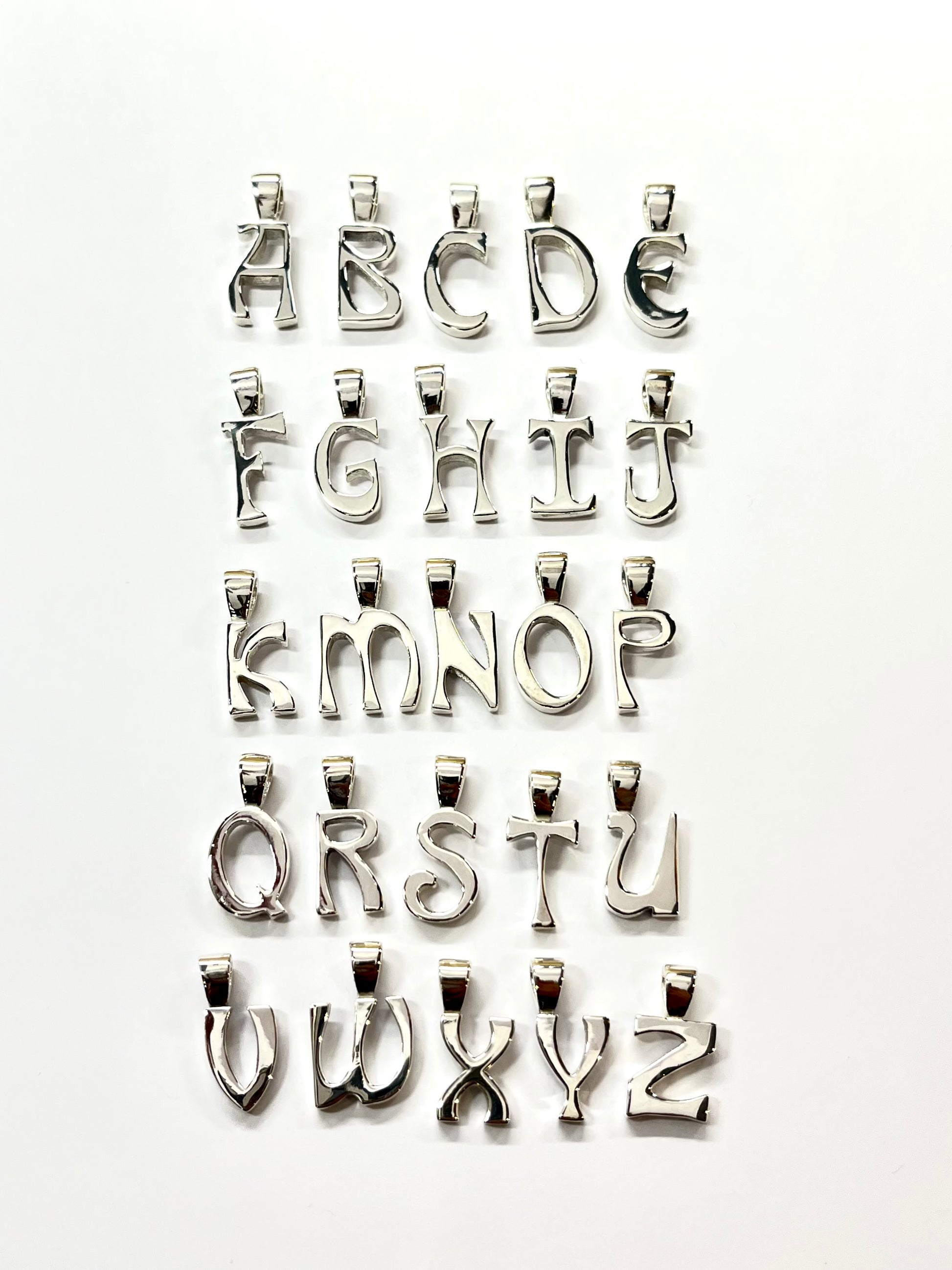Sterlign Silver .925 solid alphabet charms with 18" snake chain.