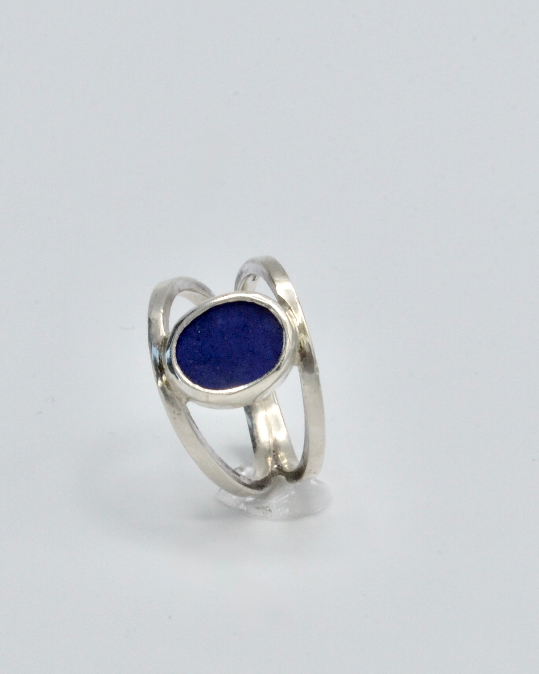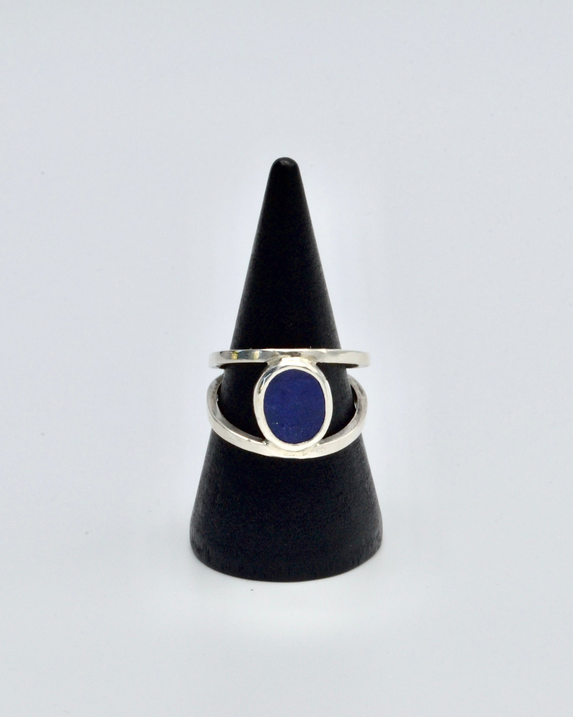 Sterling Silver handcrafted double square band ring with a natural lapis lazuli set in the middle.