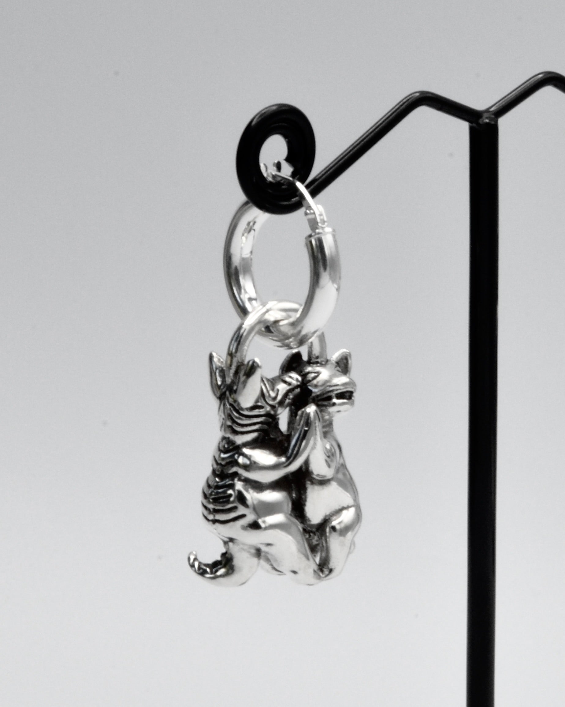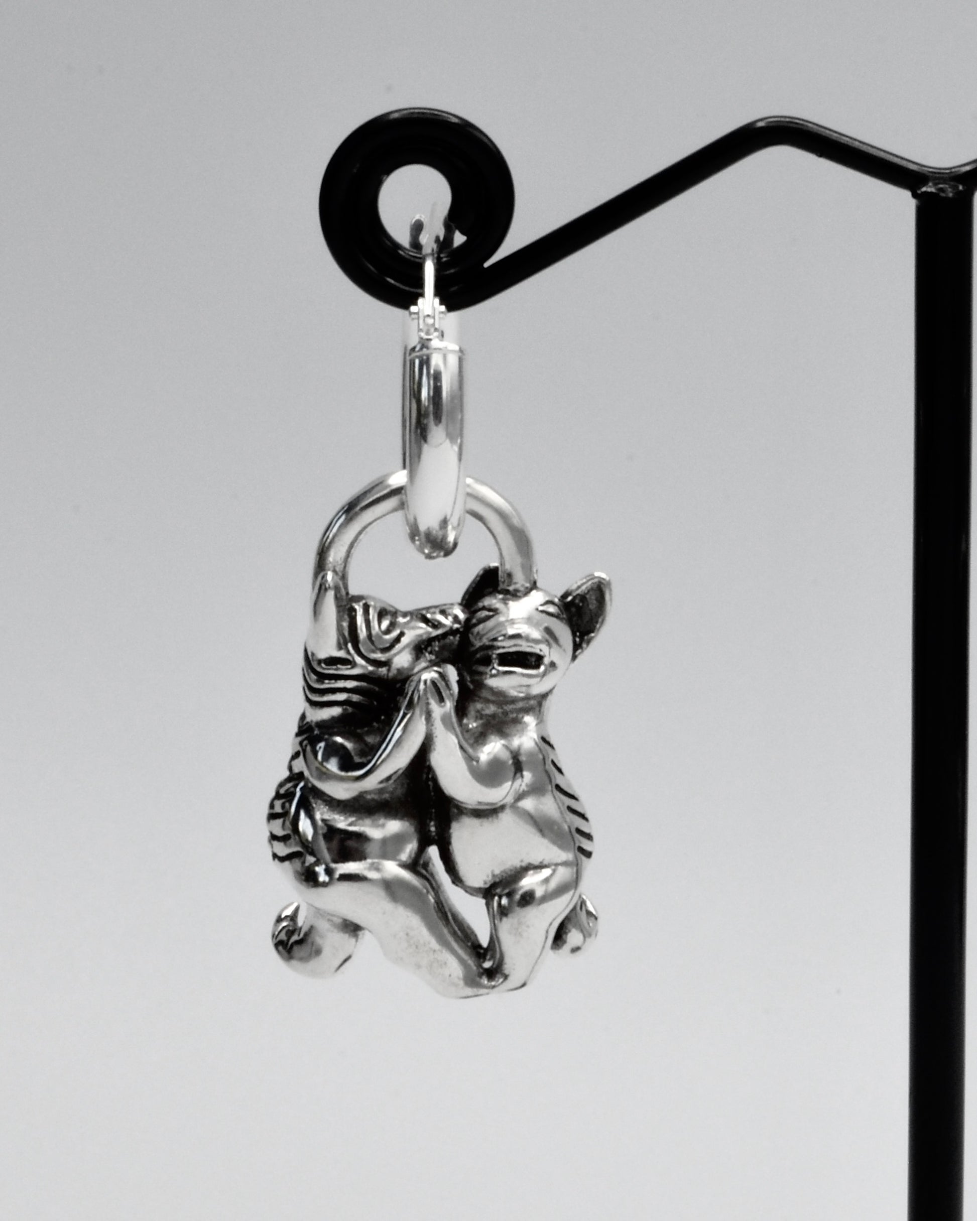 Sterling Silver .925, single large dancing dogs with hoop. One piece of a large dancing dogs charm with a hoop.