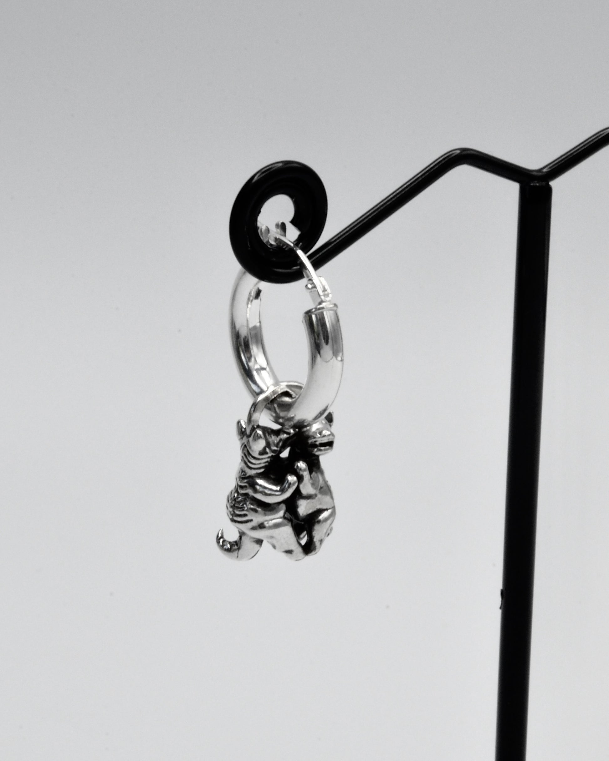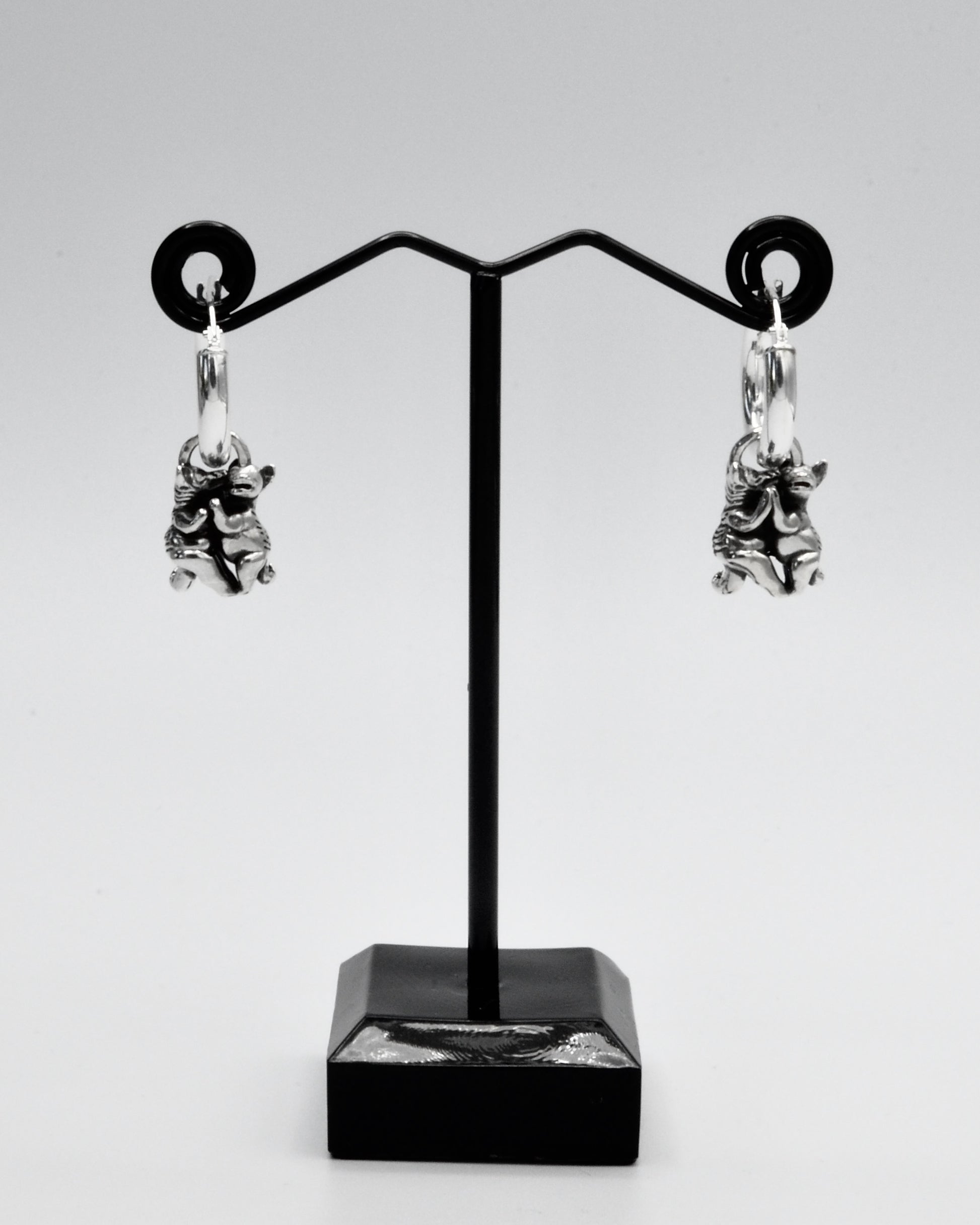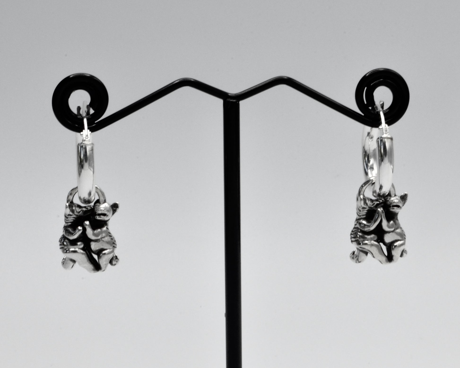 Sterling Silver .925, pair of small dancing dogs charm with hoops.