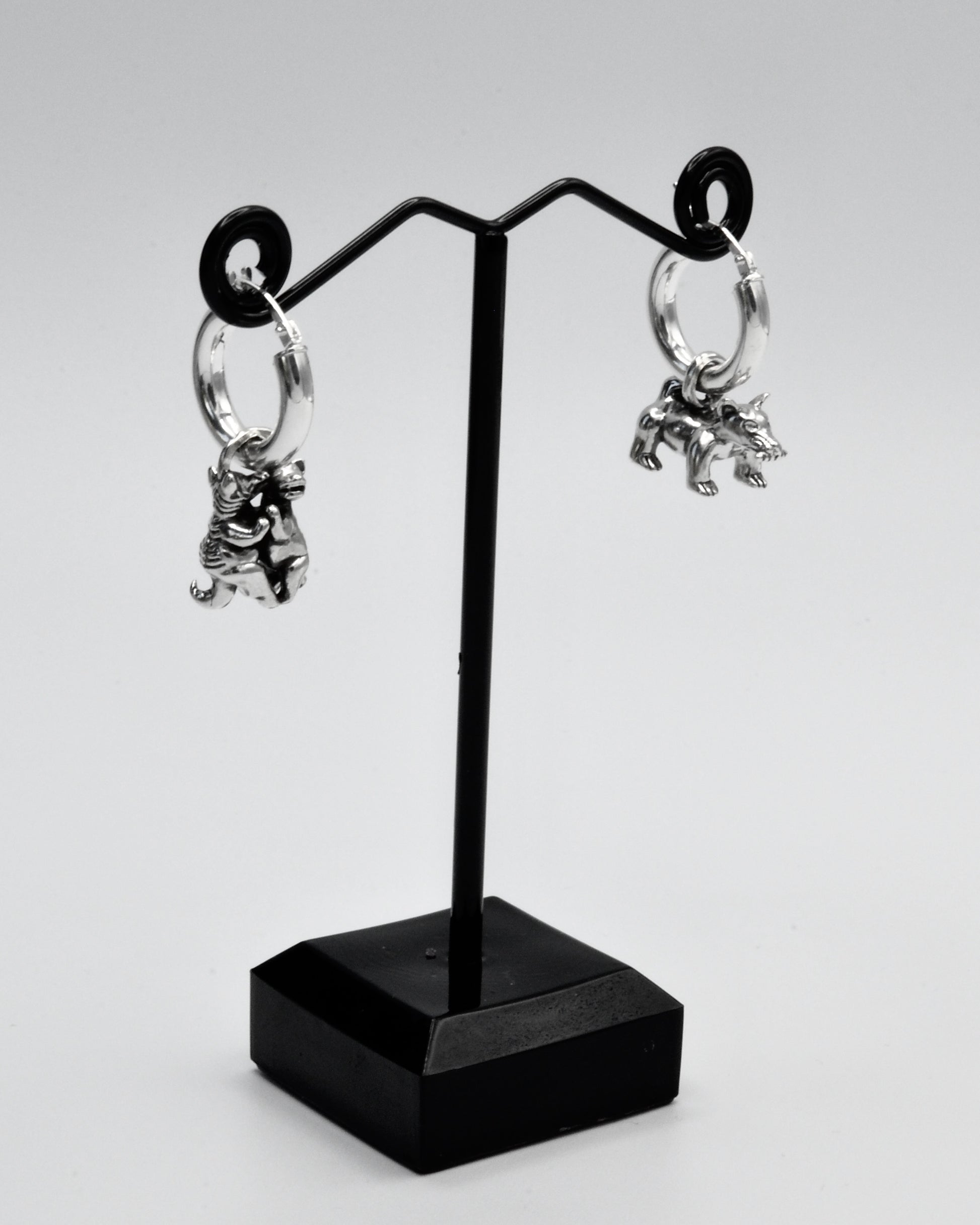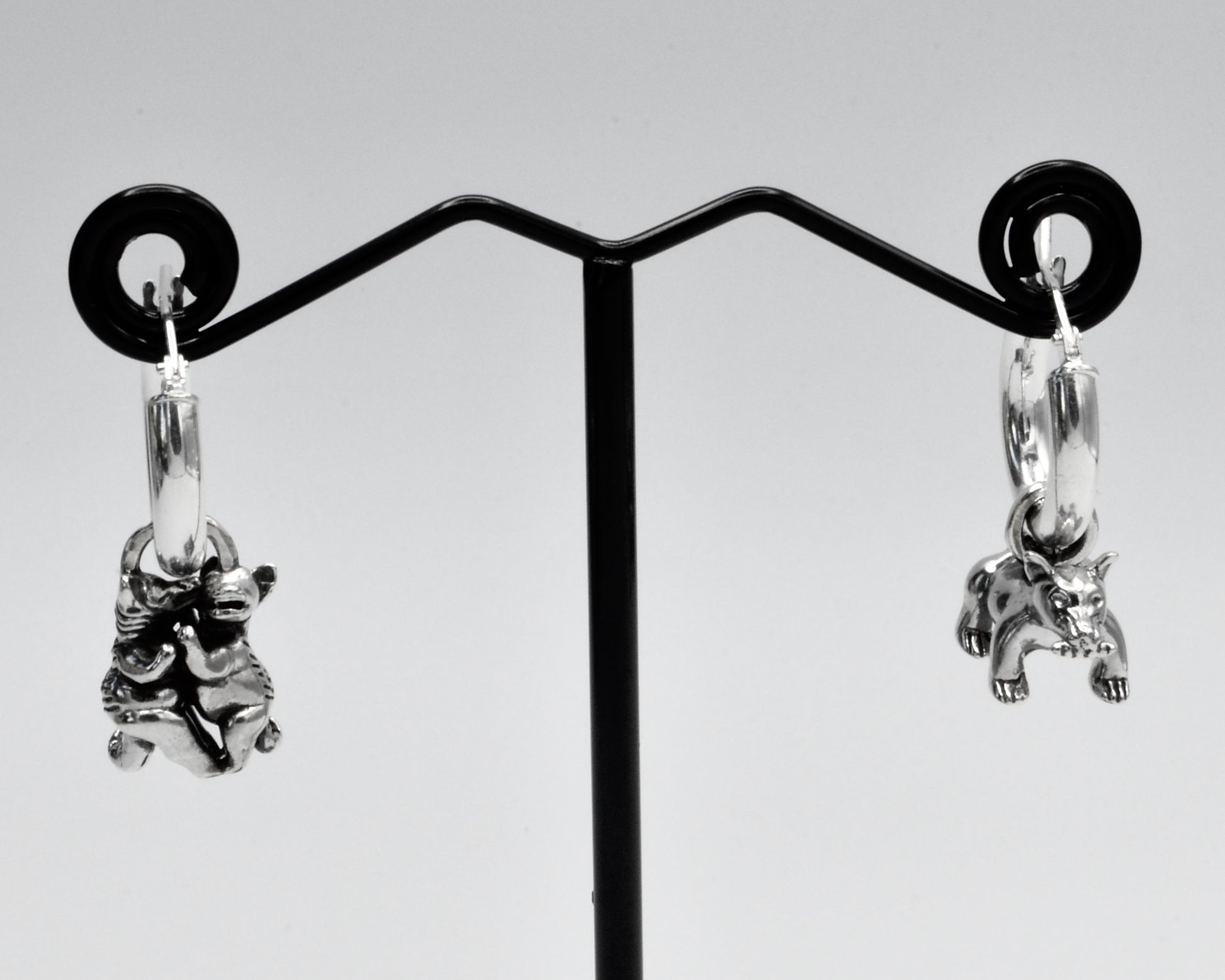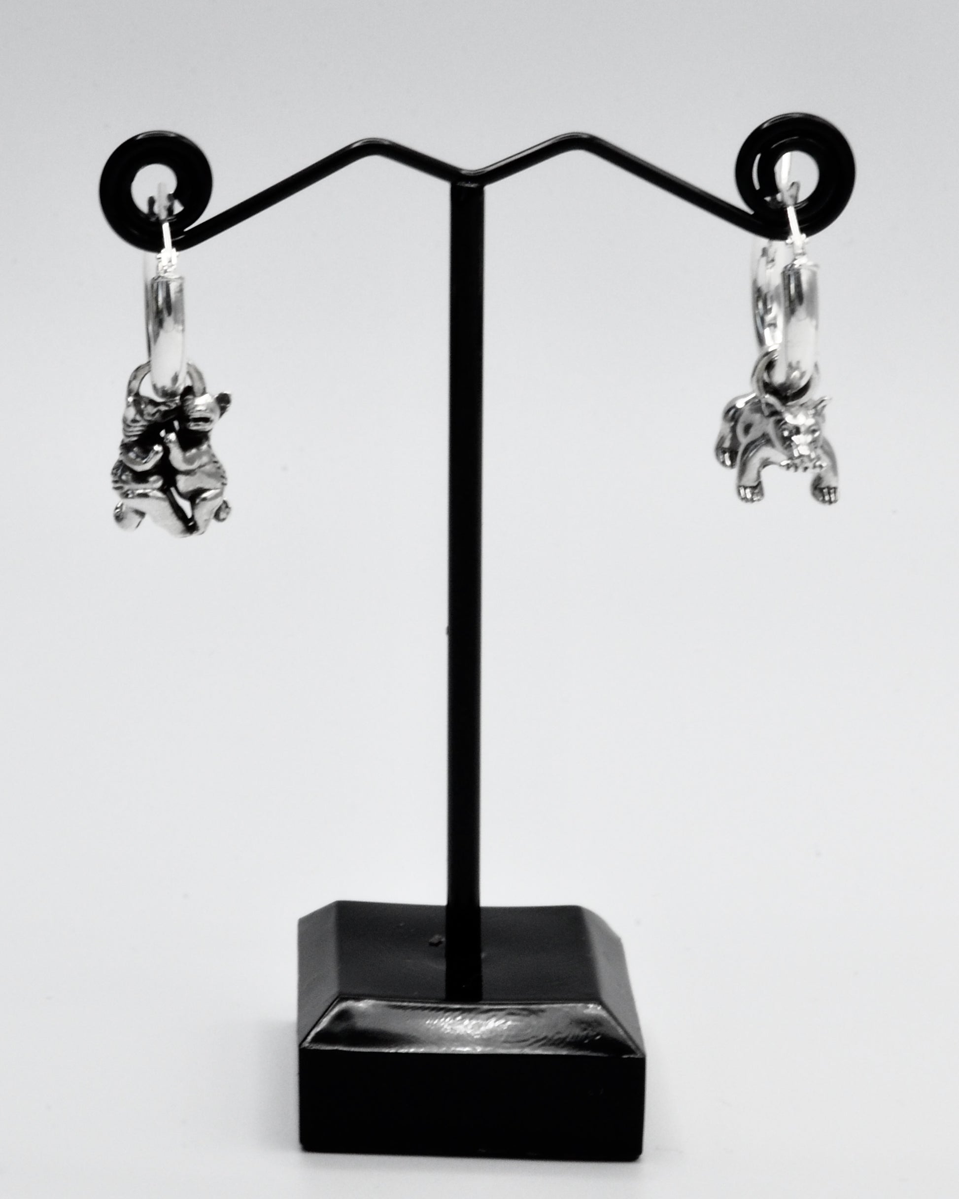 Sterling Silver .925, pair small of dogs. One piece dancing, and the other one a dog. Charms with hoops.