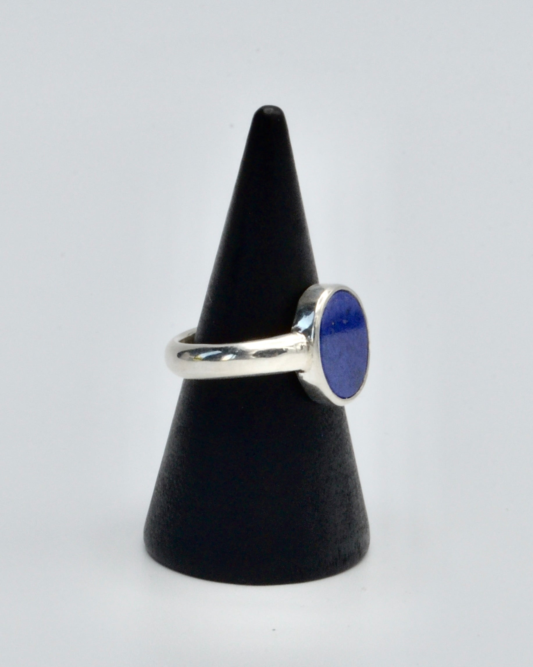 Sterling Silver handcrafted half round band ring with a natural lapis lazuli gemstone set in the middle.