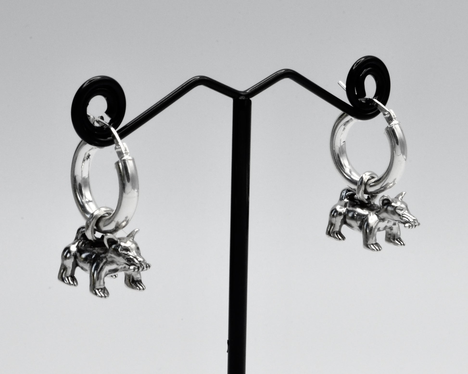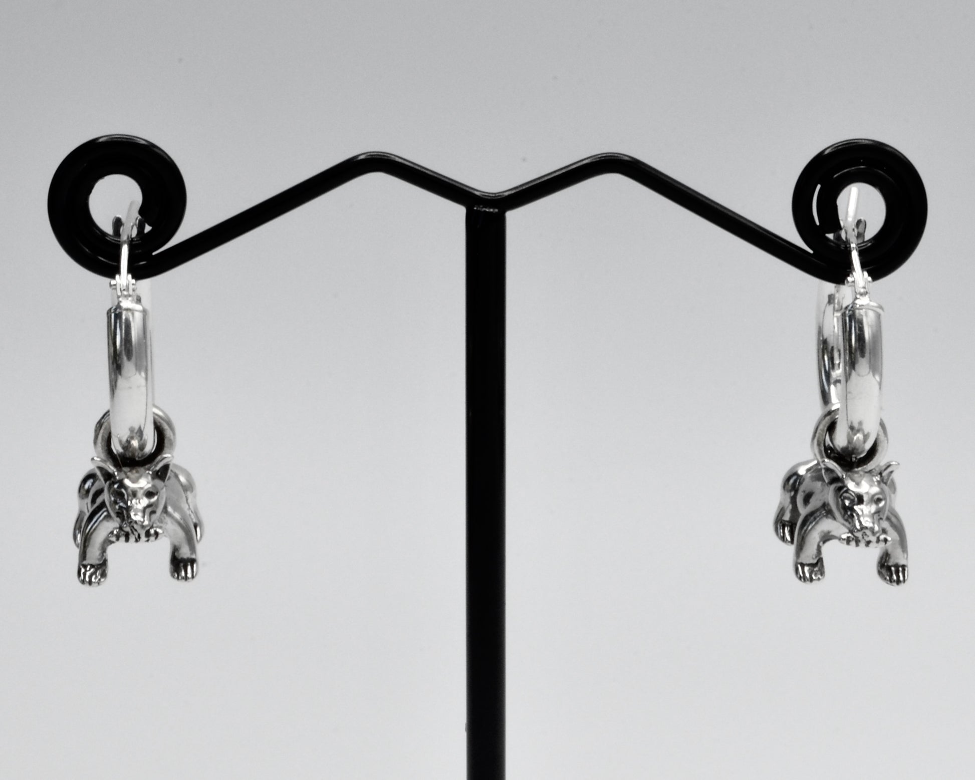 Sterling Silver .925, pair of small dog charm with hoops.