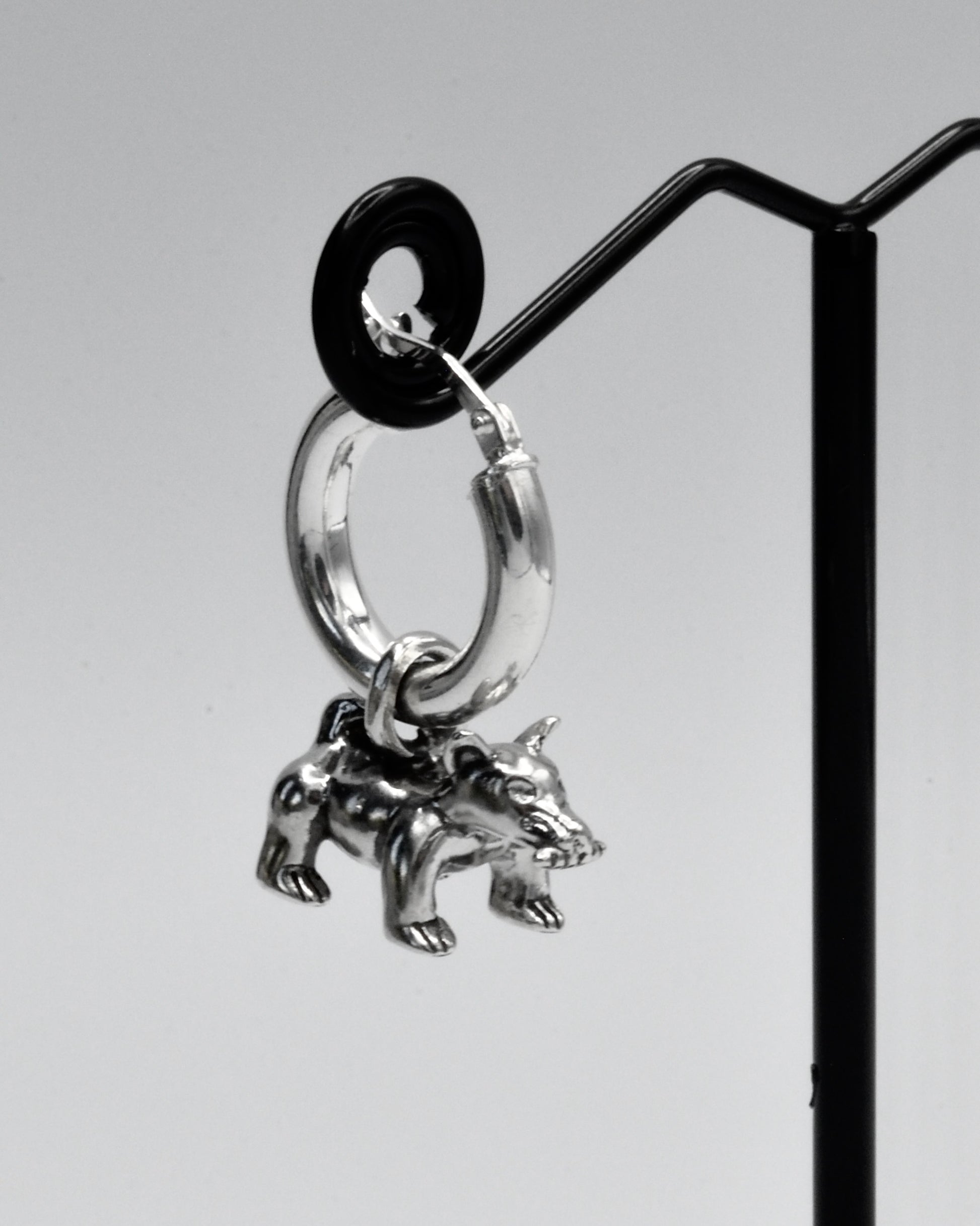 Sterling Silver .925, single small dog hoop. One piece of a small dog charm with a hoop.