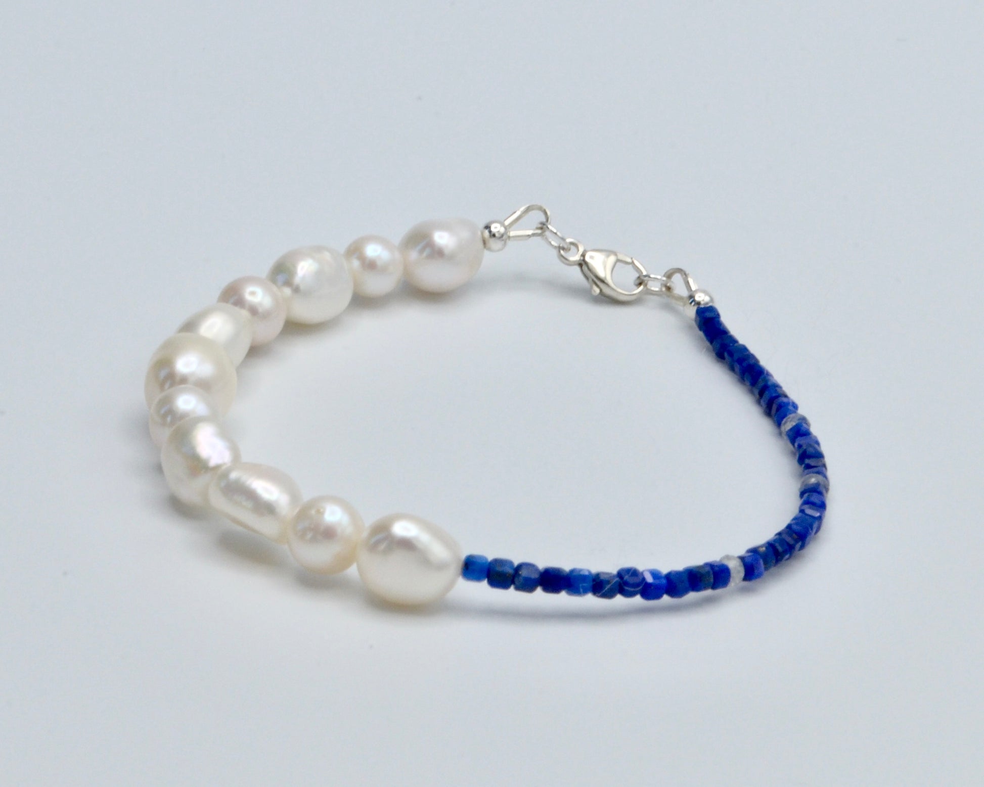 Fresh water pearls and natural lapis lazuli and labradorite stone.